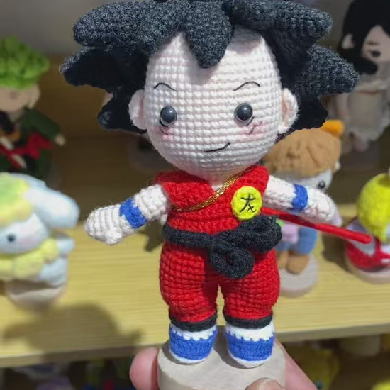 Whose childhood didn’t involve clenching their fists and chasing after little Goku’s Kamehameha? This hand-crocheted little Goku weaves all the excitement and cuteness from those days you sat in front of the TV directly into warm, cozy yarn!